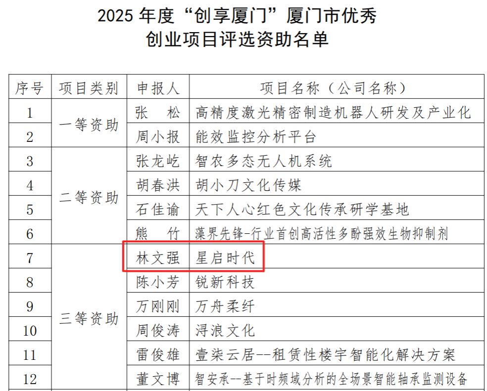 近日,厦门市人力资源和社会保障局公布了2025年度“创享厦门”厦门市优秀创业项目评选资助名单,我校2021届云计算技术与应用专业毕业生林文强的创业项目脱颖而出,荣获三等资助5万元。